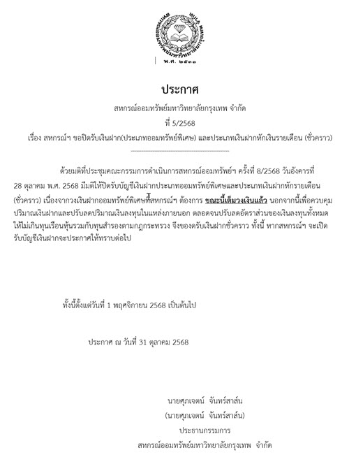 | เงินฝากออมทรัพย์พิเศษ (ตั้งแต่วันที่ 1 ก.ย. 2568) |