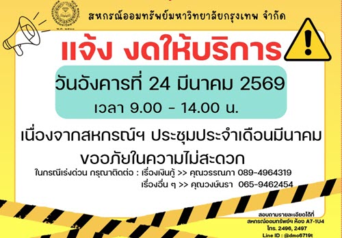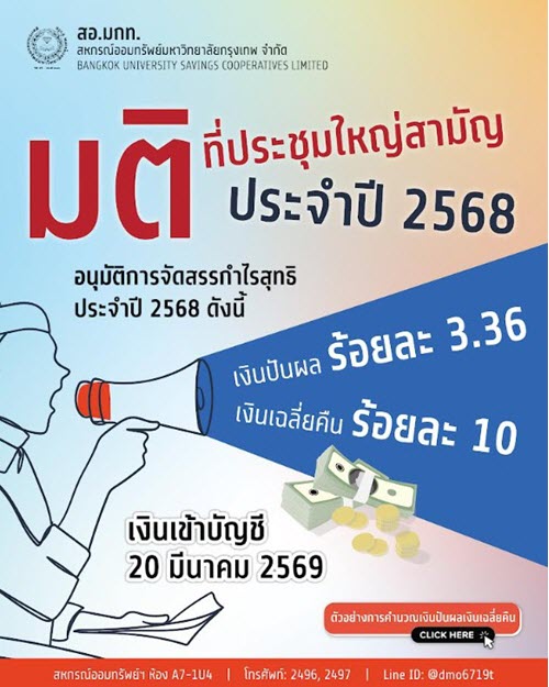 | เงินกู้เพื่อเหตุฉุกเฉิน เพื่ออาชีพเสริมแก่สมาชิกสหกรณ์ (ตั้งแต่บัดนี้ ถึงวันที่ 31 ธ.ค. 2568) |