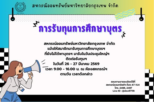 สอ.มกท. ขอแจ้งการรับทุนการศึกษาบุตร
